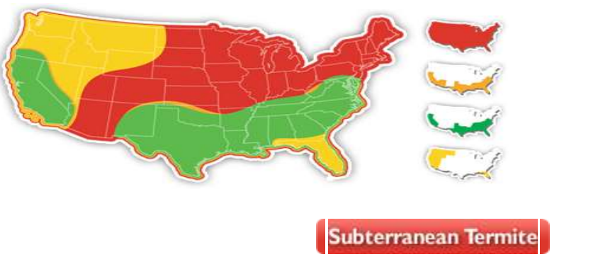 The map below shows the distribution of the main species of termites found throughout the United States. Termites, especially Subterranean termites, are adapted to most climates and can be found almost anywhere throughout North America. The other species, although not as well distributed, make it not an uncommon occurrence for homeowners to face an infestation by multiple types.